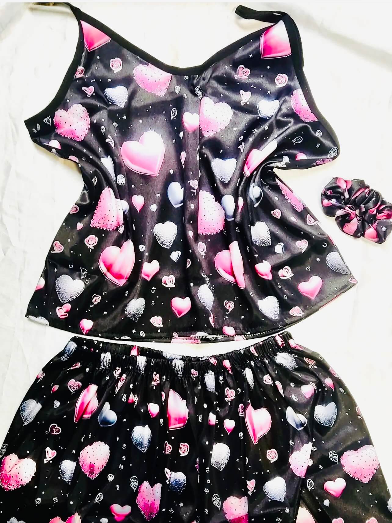 طرح تاپ و شورتک قلبی مشکی و صورتی